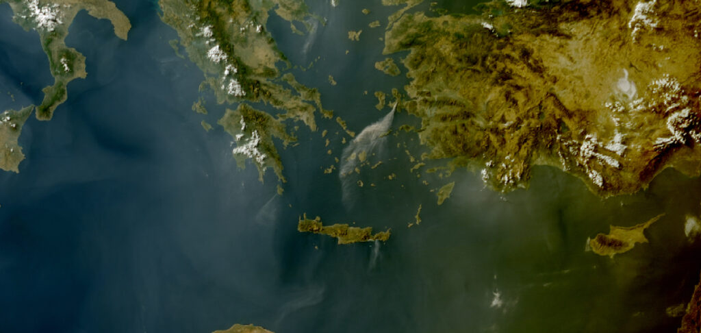 Satellite image showing smoke from large wildfires in Turkey and Greece, July 2025, EUMETSAT