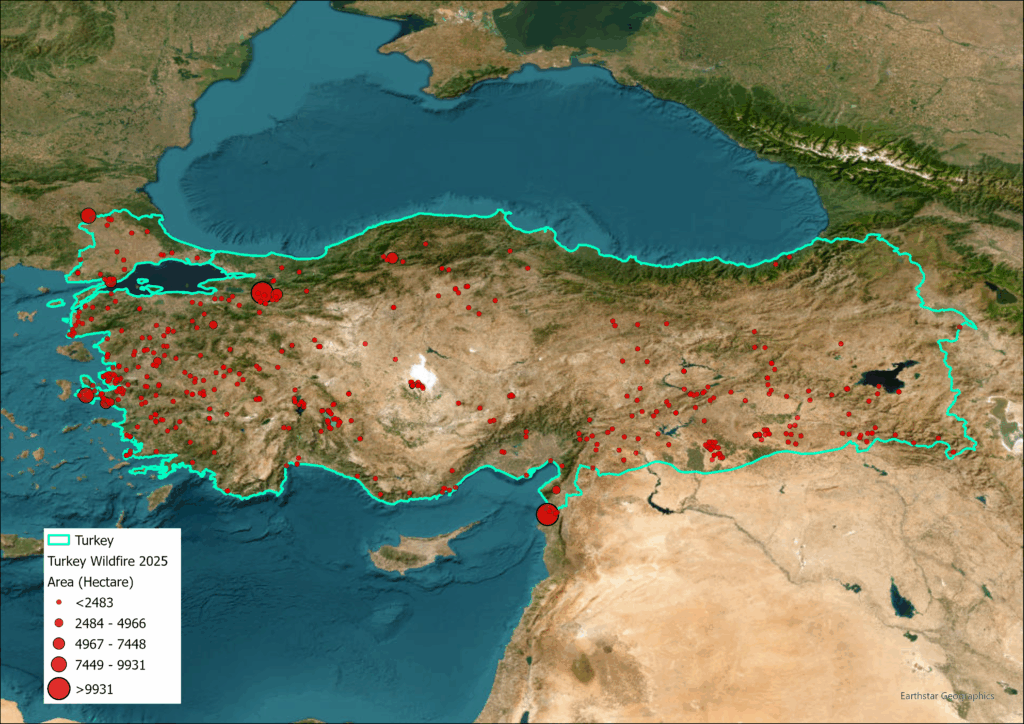 Turkey wildfires up to August 2025